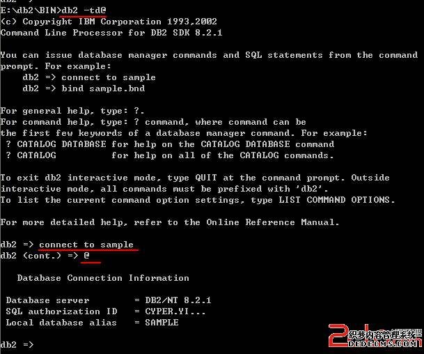 你可以通过db2 -td@进入CLP模式,