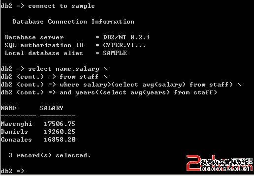 2、db2 select \ db2 (cont.) => from \ db2 (cont.) => <table_name>