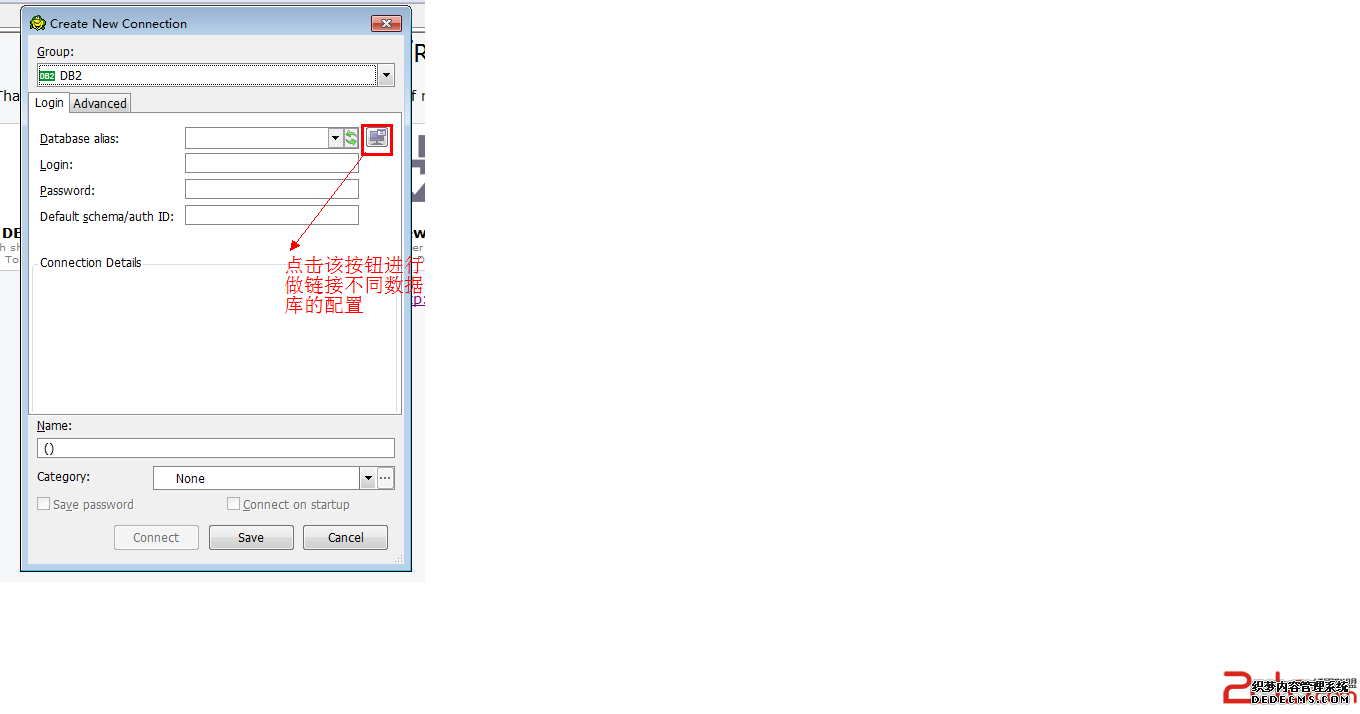 8 设置数据库信息: db2数据库名称Database name:YFGL(已经在db2上建立的数据的名称) Database alias:YFGL(填写数据库名称的时候系统会自动补充,不用更改) Authentication:server(默认,不用更改) 9 一直到finish。 如果看到下边则配置成功了: DB20000I The CATALOG DATABASE command completed successfully. DB21056W Directory changes may not be effective until the directory cache is refreshed.