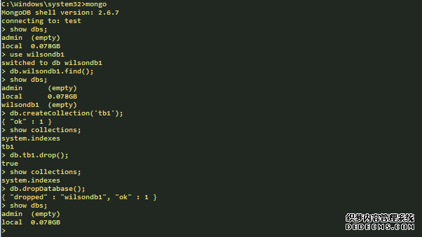 1.默认为存在“admin”和“local”两个数据库;admin数据库是存放管理员信息的数据库,认证会用到;local是存放replication相关的数据;这两处本篇都没有涉及到;