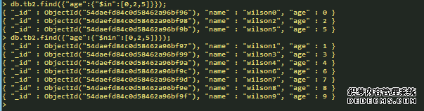 in和not in查询(包含、不包含) $in $nin