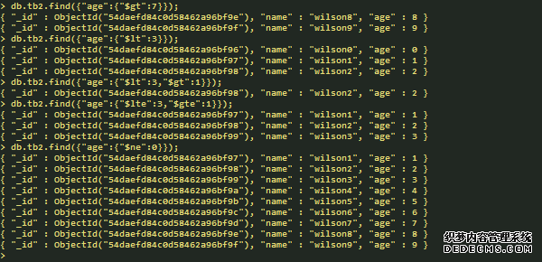 按条件查询(支持多条件):db.表名.find(条件);
