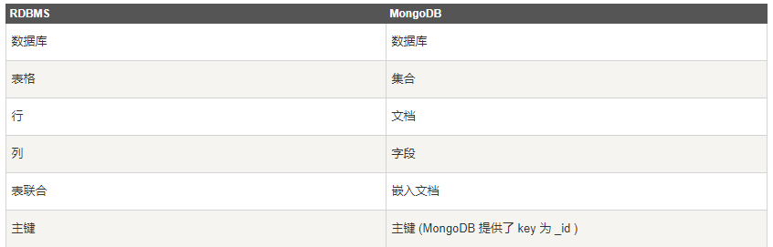 4、介绍一下RDBMS与Mongodb的一些概念,有助于帮助大家理解