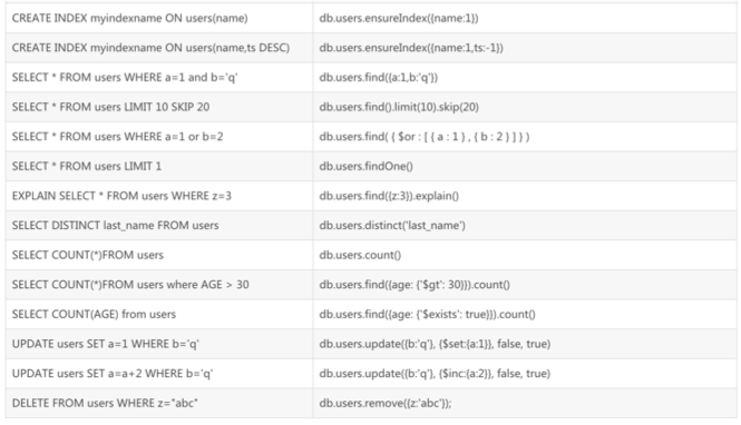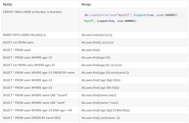 MongoDB 跟 Mysql 的语法对比