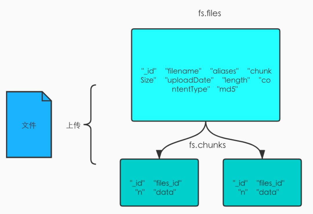 本质上还是讲文件的数据分块存储在集合中,默认的文件集合分为 fs.files 和 fs.chunks。