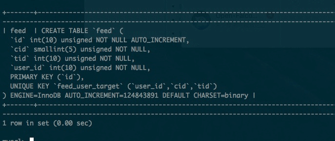 如下,该表的量级已经到亿级别了,因为有足够多的cache前顶,又因为这样那样的原因,所以没来的及做分库分表。