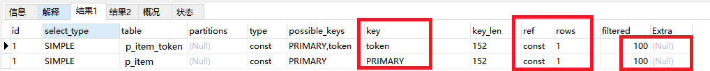 其中表 p_item_token 中 itemid 是主键, token 是唯一索引。 p_item 中itemid 是主键