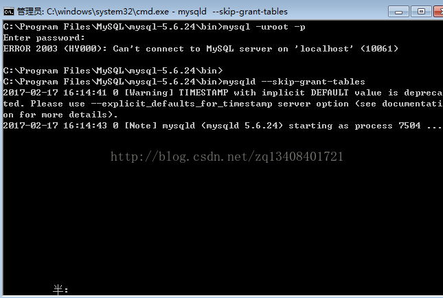 在这个目录下打开控制台,输入:mysqld --skip-grant-tables