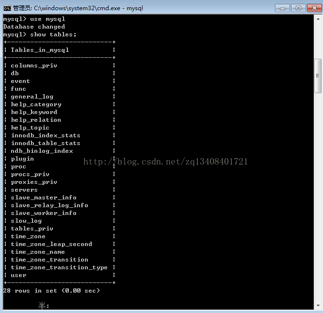 3) 输入:use mysql