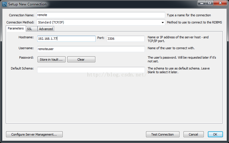 一台电脑上安装了Workbench,现需要访问另一台ubuntu服务器上的MySQL数据库,但mysql默认是不允许访问的,考虑到安全性问题,也不适合使用root用户来访问mysql。