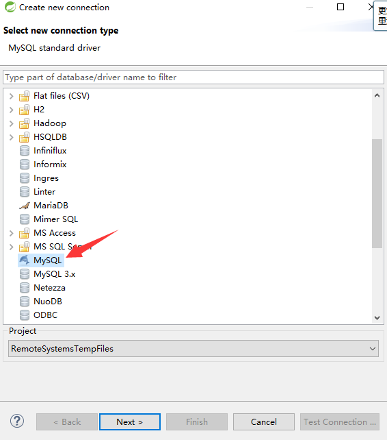 选择连接MySQL数据库