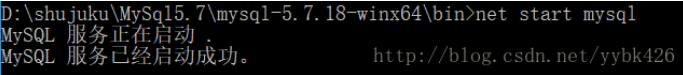 10.如果是删除mysql,cmd中进入D:\shujuku\MySql5.7\mysql-5.7.18-winx64\bin中,如果服务开启中,先关闭MySQL服务:netstop mysql,然后在运行:mysqld –remove。