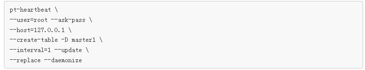 其中指定了 master 的连接信息, --create-table -D master1 是指在 master1这个数据库中创建心跳表,后面的参数指定执行 update 的时间间隔。