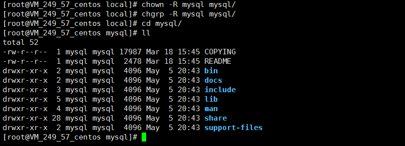 7、chgrp -R mysql:mysql ./ ##进入mysql包中