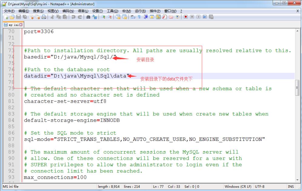 由于使用的是安装版本,所以My.ini下的Datadir没有修改,所以报错,启动找不到数据文件,所以需要把my.ini 文件中的Datadir 改成你安装路径下的data文件
