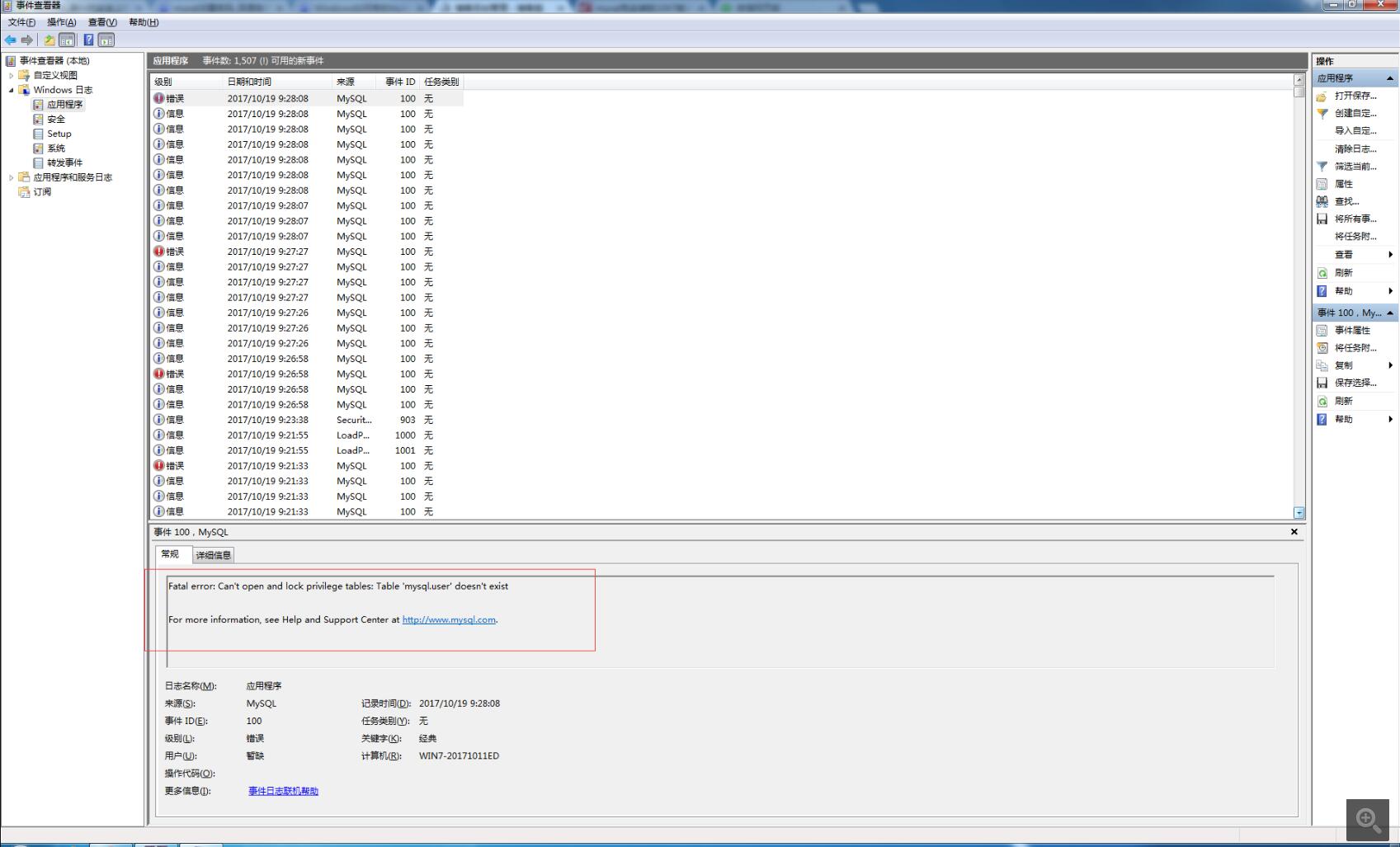 1.打开运行-事件查看器--Windows日志--应用程序--找错误标志,如下图
