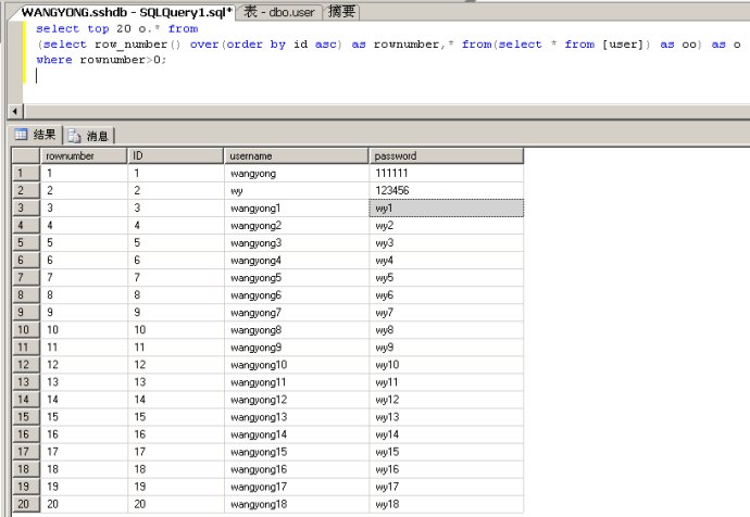 知道了sqlserver中的row_number函数,分页也就简单了.....