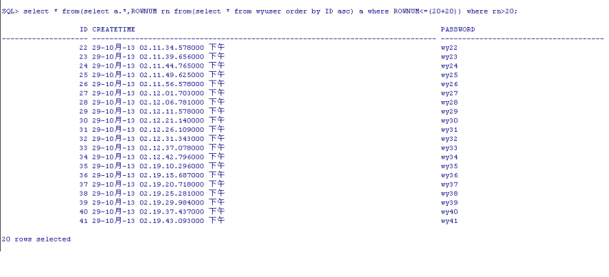 查询(21-40)这20条记录