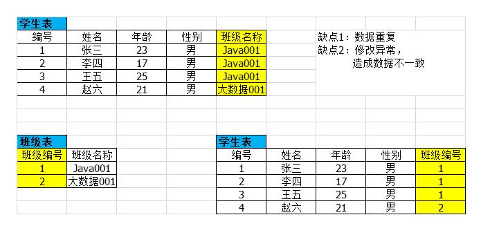 -- 创建一个班级表 create table class ( cno int(4) auto_increment, -- 只有主键才可以自增 cname varchar(12) not null, room varchar(4), primary key(cno) ); -- insert into class values (null,'Java001',507); -- insert into class values (null,'Java002',502); -- insert into class values (null,'大数据001',401); insert into class values (null,'Java001',507),(null,'Java002',502),(null,'大数据001',401); -- 查询数据 select * from class -- 创建一个学生表 drop table student create table student2( sno int(6) primary key auto_increment, name varchar(12), sex char(1), age int(2), classno int(4), constraint fk_stu2_classno foreign key (classno) references class(cno) ); desc student2; insert into student2 values(null,'zhangsan','男',23,1); insert into student2 values(null,'lisi','男',24,1); insert into student2 values(null,'wangwu','男',16,2); insert into student2 values(null,'zhaoliu','男',24,4); -- delete from class where cno = 1 update class set cno = 5 where cno = 2 select * from class select * from student2 -- 如果想删除1班,请手动的先对1班的学生进行处理(删除或者清空外键) update student2 set classno = null where classno = 1 delete from class where cno = 1 -- 希望在更新班级编号的时候,可以直接更新学生的班级编号;希望在删除某个班级的时候,清空学生的班级编号 -- 修改外键设置:外键要修改只能先删除再添加 alter table student2 drop foreign key fk_stu2_classno; -- 注意提示的问题,其实已经删除了外键 alter table student2 add constraint fk_stu2_classno foreign key (classno) references class(cno) on delete set null on update cascade /** 问题1:学生属于某个不存在的班级 问题2:删除了1个班级,学生的班级编号还存在 原因:没有进行语法上的约束:外键约束 foreign key 外键约束 --外键:一个表的某列的值要参照另外一个表(也可能是当前表)的主键列或者唯一列,该列成为外键 -- student2表的某列classno的值要参照另外一个表class(也可能是当前表)的主键列或者唯一列cno,该列成为外键 -- 如果参照当前表的主键列,也是外键,成为自关联 比如 emp表的mgr就是外键,参照emp的empno **/ drop table class; drop table student2 /** 外键的三种策略 1.不允许 要删除班级,先手动的对该班级的学生进行处理 如果无法确定,或者要保持灵活性 2.cascade 级联 留言和回复 朋友圈消息---点赞 评论 3.set null 清空外键 班级和学生 */