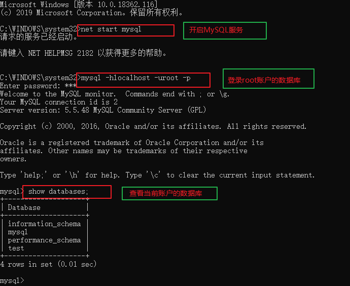 一、安装MySQL之后,怎样启动MySQL,以及登录、查看数据库操作?
