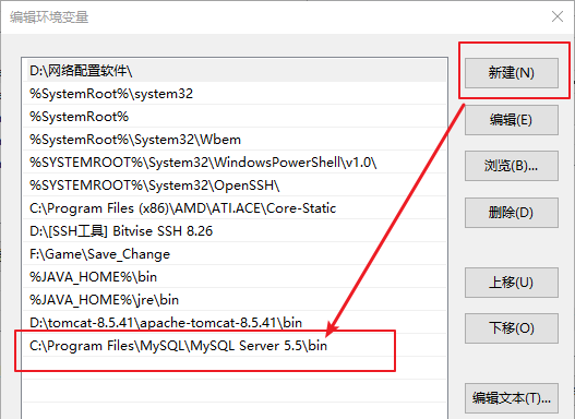2、还有一种情况是即使上面正确配置,在系统的环境变量的path中不能自动写入MySQL的环境变量,这是就需要自己手工配置了