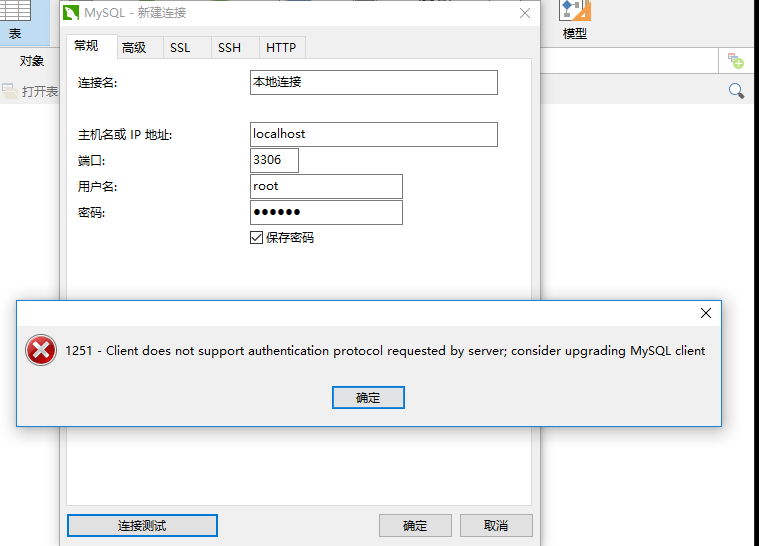 1251 - Client does not support authentication protocol required by server; consider upgrading MySQL client