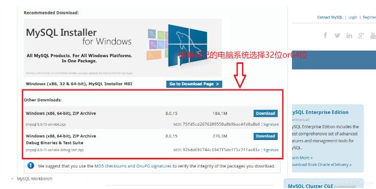 1.首先,你要下载MySQL解压版,下载地址:https://www.mysql.com/downloads/,图解: