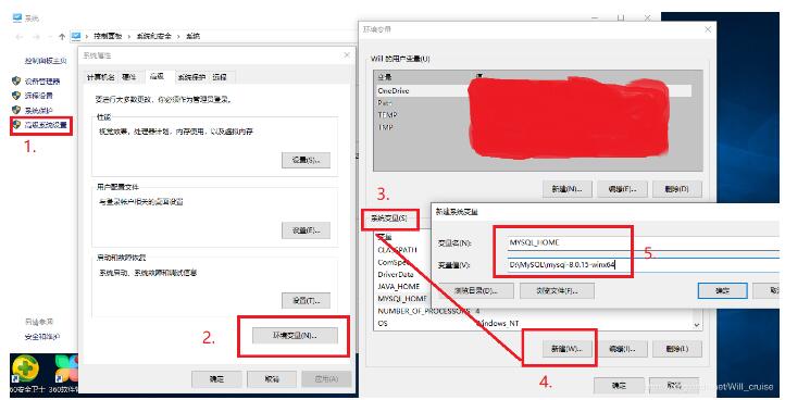 在Path中添加:%MYSQL_HOME%\bin,注意Path中不同值之间的“;”符号不能省略