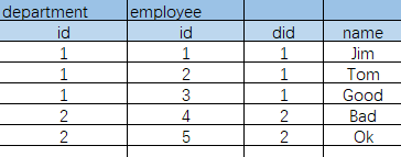 SELECT * FROM department LEFT JOIN employee ON department.id = employee.did;