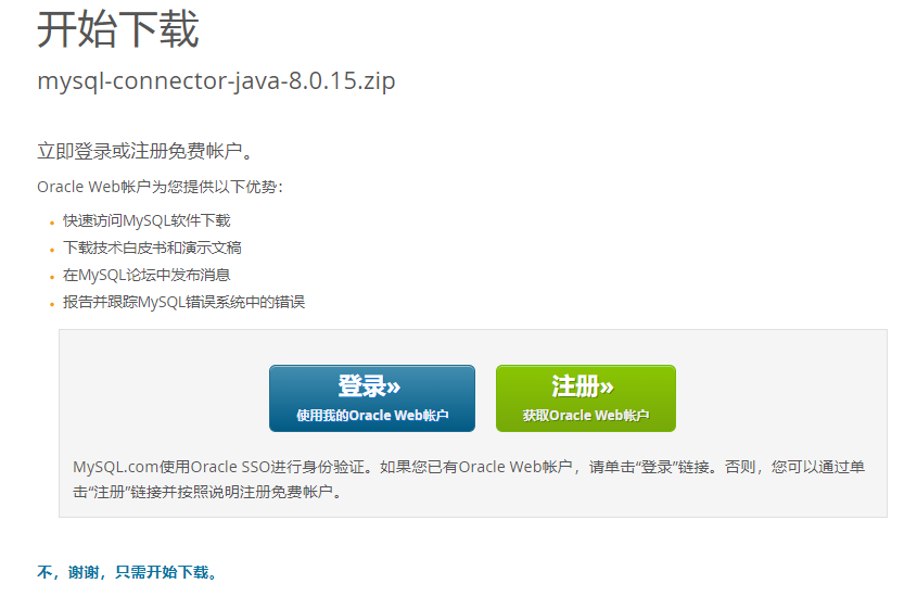 第三步:开始下载(没账户就选择左下角的,“不,谢谢,只需开始下载”,等待会便会开始下载)