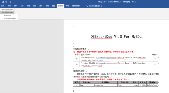 配置好数据源后(我创建的数据源名称是yxdb,可以任意取名,保持一致就行),打开压缩包中的word文件(注:一定要用Office Word打开,我开始是用WPS打开的,生成的时候连接字符串无法更改,生成报错),会提示启用宏,点击启用,会出现如下界面: