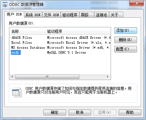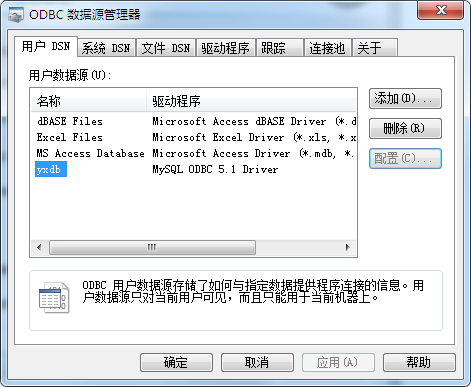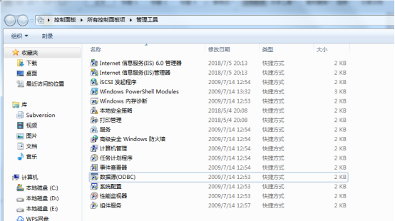 由于数据源我之前已经配置过,这次只把配置好的相关步骤截图,如果以后要重新操作一遍而且有遇到问题的话再补充。我的环境是windows 7,打开控制面板-->管理工具-->数据源,如下图: