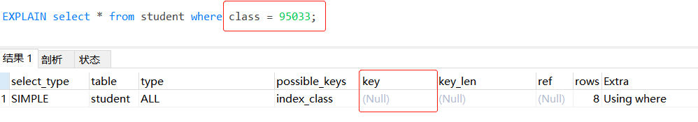 由于表字段定义为vachar类型,但在查询时把该字段作为number类型 以及where条件传给mysql。