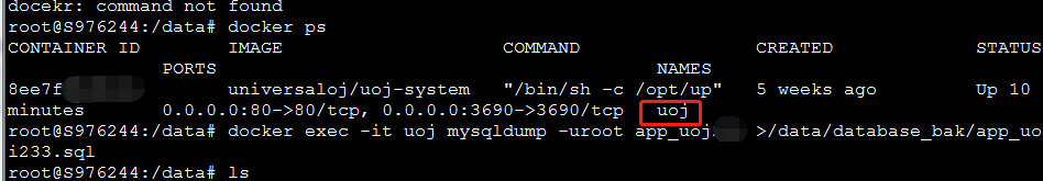 docker exec -it uoj mysqldump -uroot -proot app_uoj233 >/data/database_bak/app_uoj233.sql