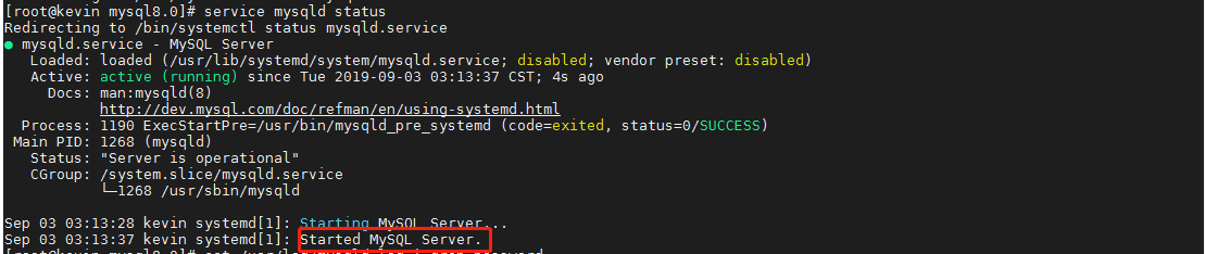 然后启动:service mysqld start 查看状态 service mysqld status