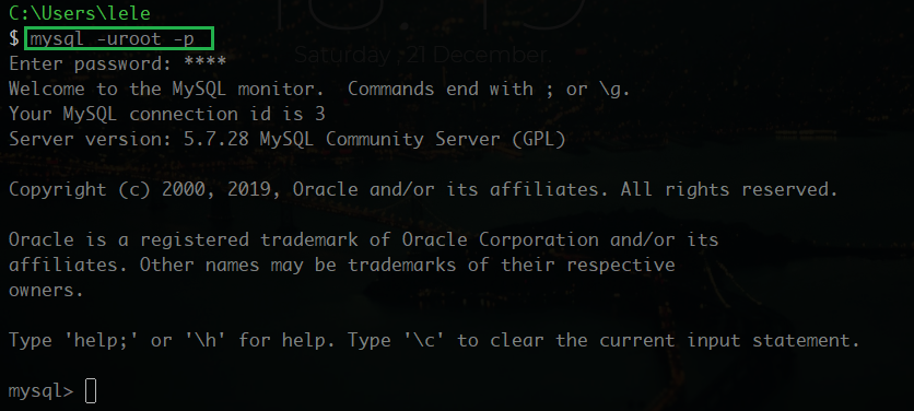 mysql -uroot -p