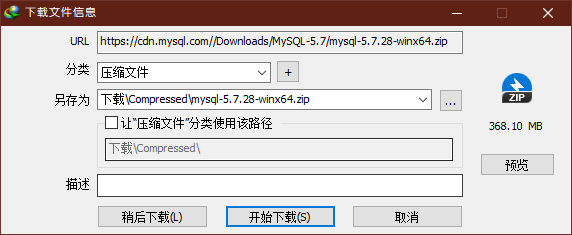 官方5.7版本zip压缩文件下载页面