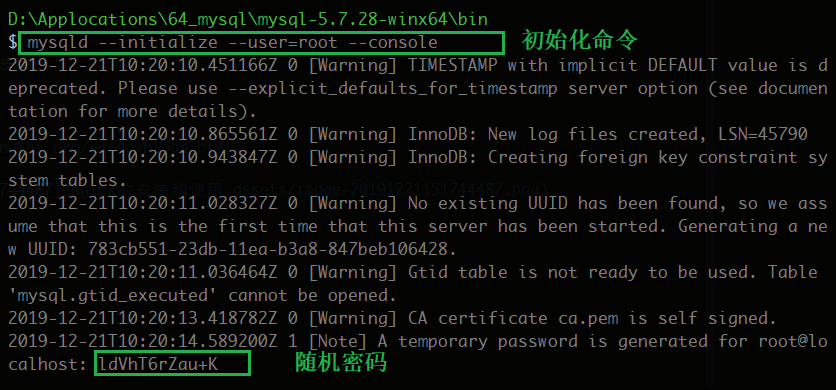 mysqld --initialize --user=root --console