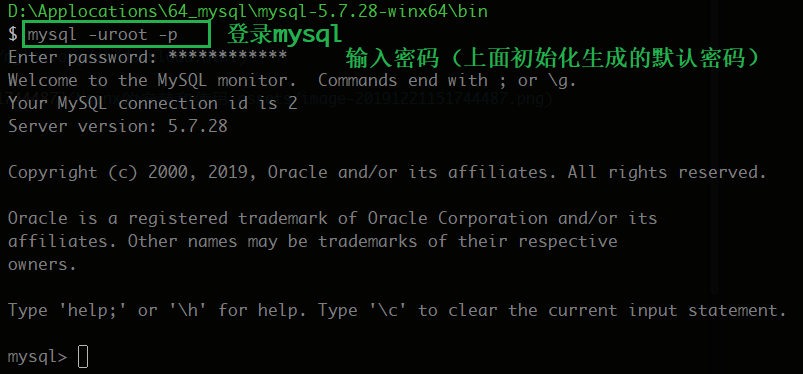 注:这个密码就是前面初始化mysql生成的随机密码