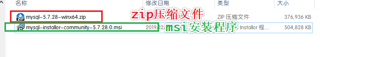 mysql的下载共有两种,一种是zip压缩文件,另一种是msi安装程序
