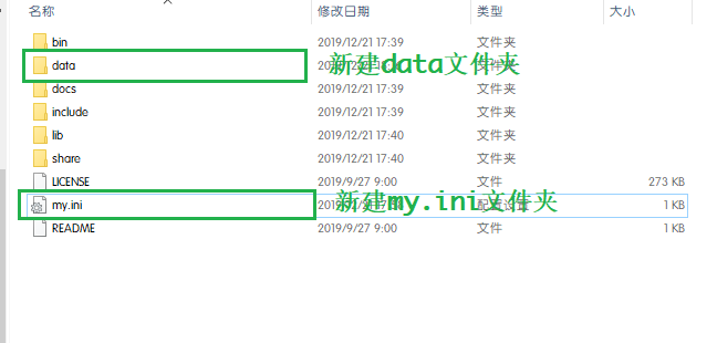 my.ini(注意电脑可能未显示文件拓展名,my.ini文件不要放在data文件夹里)