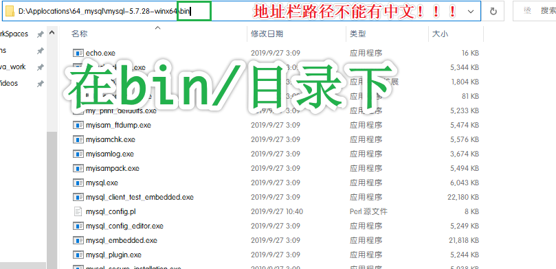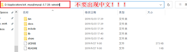 地址路径不能含有中文,如果前面没注意,可将mysql安装文件剪切到纯英文路径下