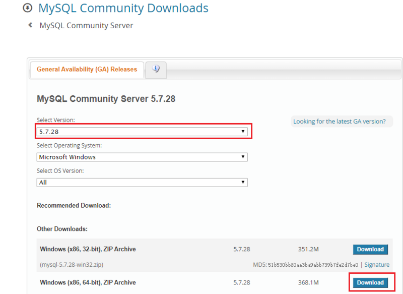 我这里选择5.7.28-Windows64位