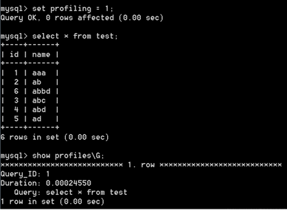 测试完毕以后,关闭参数:mysql> set profiling=0