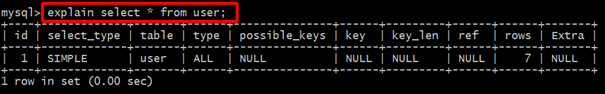 EXPLAIN 命令用法十分简单, 在 SELECT 语句前加上 explain 就可以了, 例如: