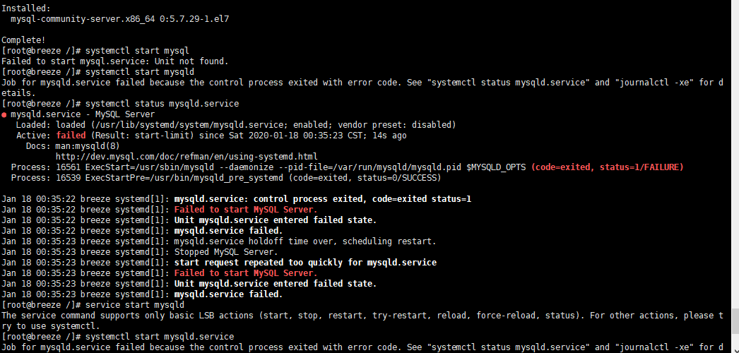说白了就是有的之前的mysql 和现在的mysql虽然名字一样,但是不是一个东西,所以冲突了,导致运行的mysqld 的时候无法初始化,