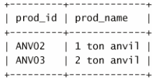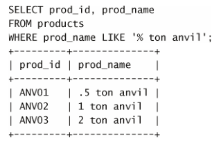 prod_name LIKE '%anvil' 将不会匹配它们,因为在最后的 l