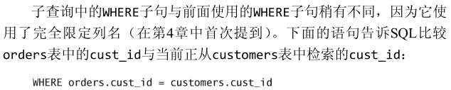 如果不完全限定列名,MySQL将假定你是对 orders 表中的 cust_id 进行
