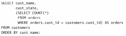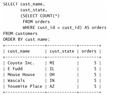 它是由圆括号中的子查询建立的。该子查询对检索出的每个客户执行一