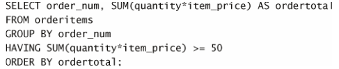 HAVING 支持所有 WHERE 操作符 在第6章和第7章中,我们学习